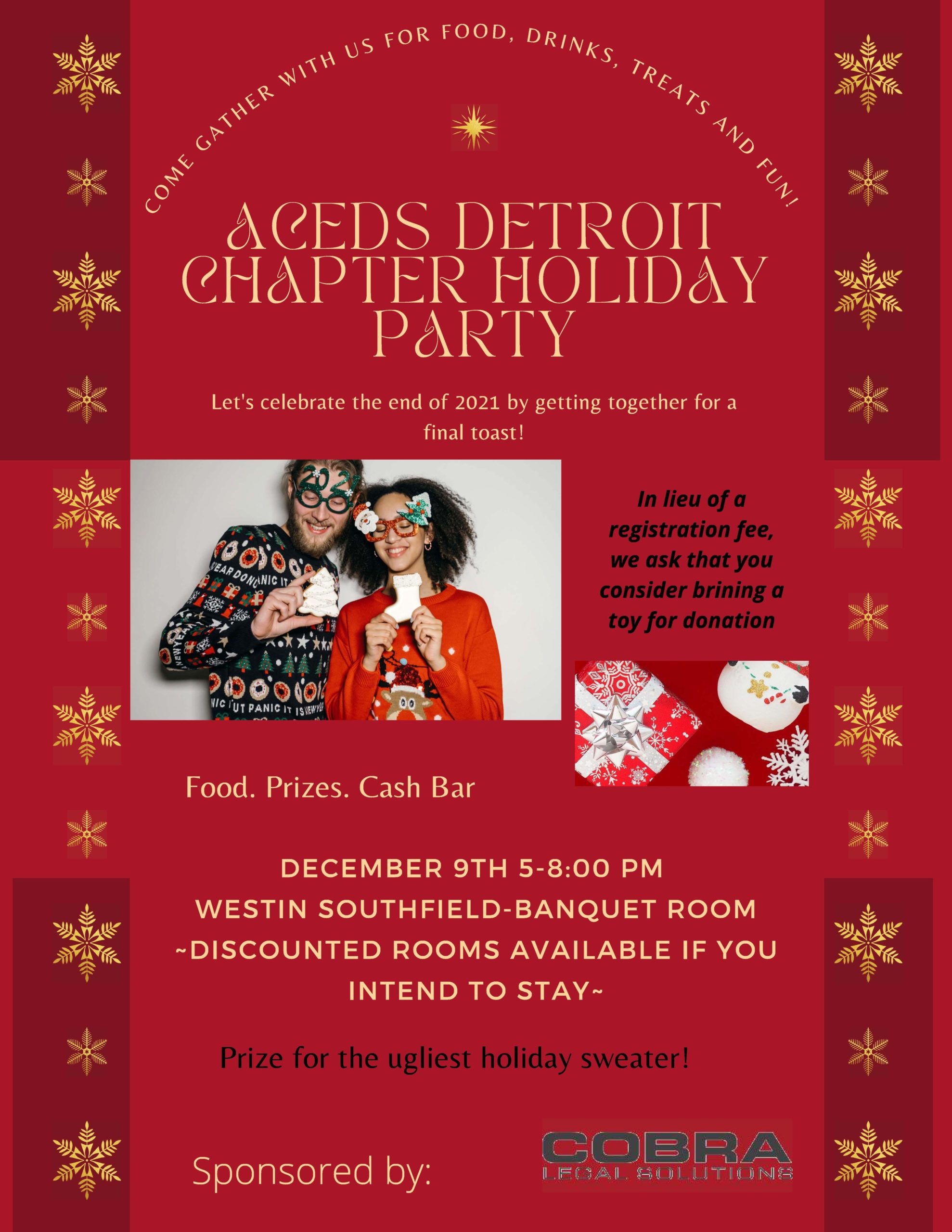 The Westin Southfield - Banquet Room 1500 Town Center, Southfield, MI 48075, Southfield, MI, USJoin the ACEDS Detroit Chapter for its annual Holiday Party . . .Join the ACEDS Detroit Chapter for food, drinks, treats, fun, and a prize for the ugliest holiday sweater! In lieu of a registration fee, we ask that you consider bringing a toy for donation. The Westin Southfield Detroit is offering a special group […]